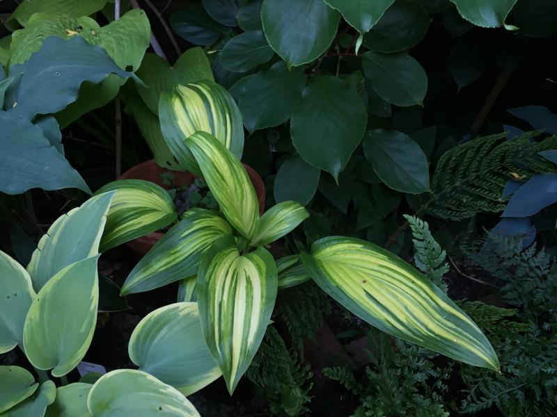Hostas sind offenbar nur sehr schwer umzubringen.Im Sommer letzten Jahres musste eine 'Jurassic Park' einer anderen Pflanzung weichen.Die Blätter habe ich abgeschnitten und die Pflanze ausgegraben. Der Ballen hatte etwa die Größe eines 10l-Eimers.Der Ballen sollte ein paar Tage später wieder versenkt werden und kam in die Rumpelecke des Gewächshauses.Versenkt wurde er nicht und irgenwann habe ich dann offensichtlich einen kleinen Mörtelkübel darüber gestülpt und den Ballen vergessen.In diesem Mai habe ich den Ballen wiedergefunden. Strohtrocken und man konnte nur raten wo oben und wo unten ist.Der Ballen kam in einen Kübel, wurde geflutet und kam hinter den Komposthaufen.Gestern habe ich ihn wiedergefunden. Ziemlich angefressen aber mit 8 Trieben.Jetzt kommt sie in die Erde, ein Platz steht schon fest. Das hat sie verdient !