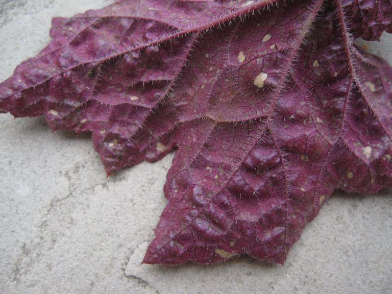 Ich habe solche Blätter auch immer mal wieder an diversen Heuchera. Bisher habe ich mir da nie Gedanken drum gemacht. Die Pflanzen selbst wohl auch nicht.
