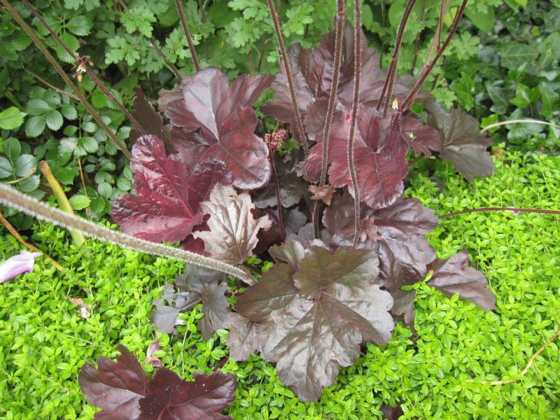 Die Heuchera, die ich für Purple halte ... sieht bei mir im HS so aus. Sonniger stehend ist sie rötlicher ...Nun, habe ich wirklich Purple im Garten?Zu lange mit Handy getrödelt, jetzt ist Heuchrix wech