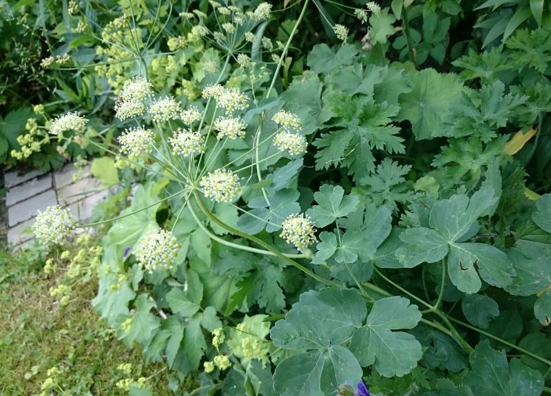Micc, Deine Unbekannte sieht interessant aus. Irgendetwas aus der Fenchel-Familie?Hier blüht endlich mal Laser trilobum. Leider etwas schief, es scheint in einer Igelpiste zu stehen.