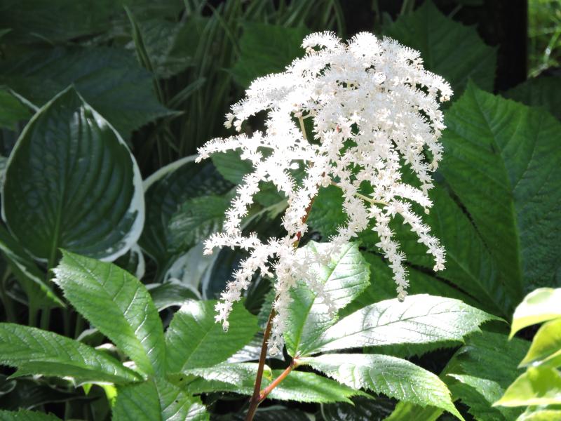 Die Blüten der Rodgersien finde ich ganz bezaubernd.Hier eine, von der ich leider das Schild verschlampert habe.