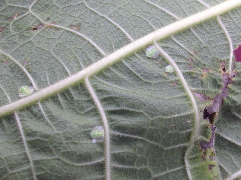 Das schaut nach etwas anderem aus, zumindest entspricht das nicht dem Schadbild des von dir weiter oben geposteten Links.Bei mir sieht das so aus:Hier sieht man es besser. Sie sehen aus wie kleine grüne Zecken mit Schwimmhäuten.