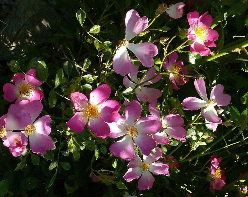 Der folgende Sämling entstammt einer Kreuzung von ´Dentelle de Bruges´ x ´Raubritter´ und ist ein Geschwister meines ´Prinz Henri´. Besonders die hohe Anzahl der kleinen einfachen Blüten und die intensive Farbe fallen bei diesem Rambler auf.
