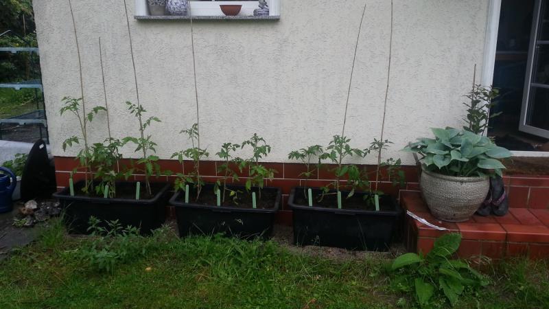 die einzigen kleinen schwarzen, die ich bisher angebaut hab, Black Prince, kommen mir nicht mehr in'n Garten, die waren zickig und platzfreudiger als alle anderen Sorten mein Boden hat Trocken-Risse, es ist gut warm, rundrum hat's immer mal wieder geregnet, nur HIER nichtich giesse alle Pflanzenkinder, aber nicht die Tomaten, die sind schliesslich schon "gross" und muessen schauen wo sie bleiben, immerhin hab ich gestern die Stecken, derer angestueckelt, fuer die ich keine Kaefige hatte, statt die Pflanzen zu koepfen