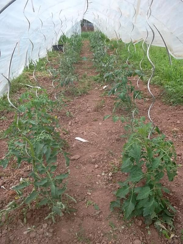 Meine sehen inzwischen so aus. Sie blühen nun und setzen Früchte an. Habe heute ausgegeizt, gehackt und gegossen, im Tunnel kann man bei Regenwetter arbeiten