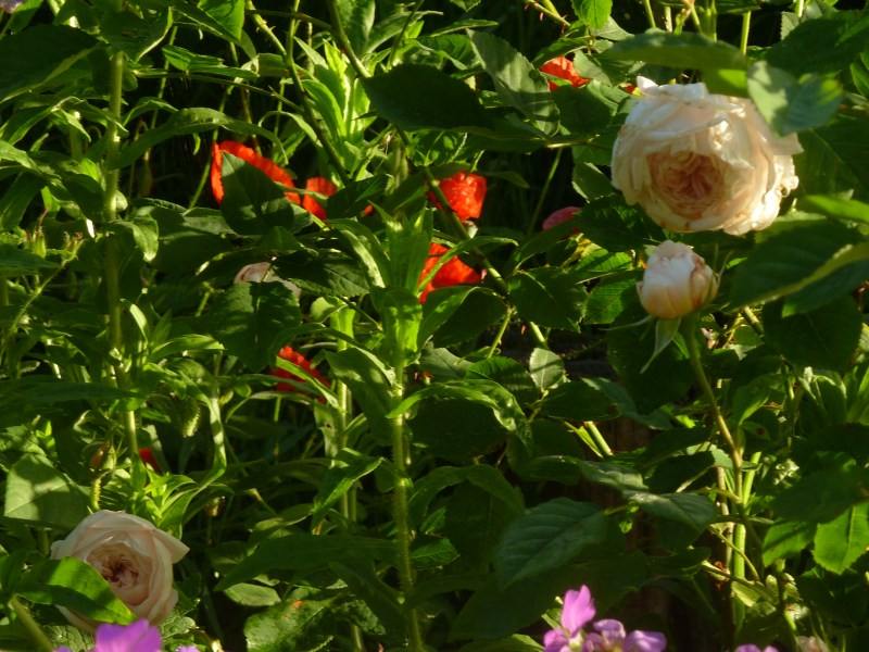 ...die Farbe, die sich hier im Vergleich mit Storchenschnabel und Mohn wohl am besten einschätzen läßt, trifft, wie ich finde, schon sehr die Farbe und den Charakter der in hmf gezeigten Rose, die je nach Lichteinfall sehr variabel wirkt, was aber widerum für mich den Reiz derselben ausmacht.Den Duft empfinde ich stark, aber weicher und süßer als den anderer Anis/Myrrhe Kandidaten, ich habe ihn so noch bei keiner andern Rose dieser Duftklasse wahrgenommenDiese Butter (zumindest vom Rand her) würde ich mir schon aufs Baguette streichen ;DBleibt die Frage, warum sie an anderem Pflanzplatz so viel mehr rosa erscheint