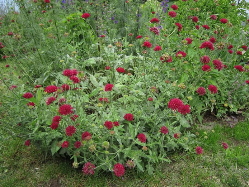 Diese Kombi gefällt mir grade besonders: Catananche caerula und Mutterkraut