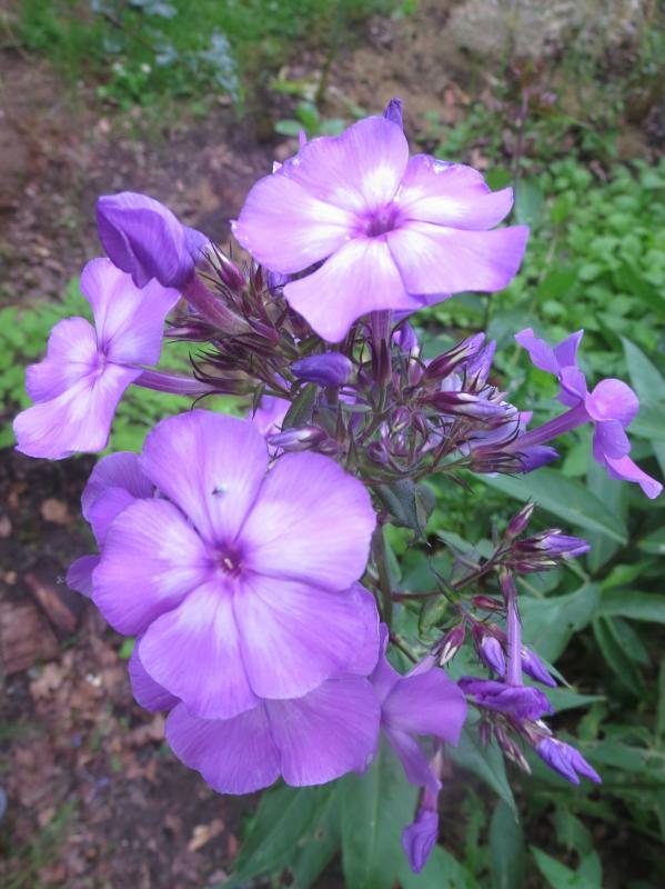 Letztes Jahr habe ich mich schon mit dem Gedanken getragen, die Mickerphloxe rauszuschmeißen, dieses Jahr werde ich es tun. Wer nach drei Jahren immer noch mit nur 1-3 Stängeln im Beet rumdümpelt, hat den Platz schlichtweg nicht verdient. Da kann mich keine noch so schöne Blüte vom Gegenteil überzeugen. Dass es geht, zeigen viele andere Kandidaten die teilweise erst im zweiten Jahr hier schon als herrliche Stauden dastehen. 'Violet Monica' steht aktuell bei 1,60 m, 'Laura', 'Kirmesländler', 'Omas Jugendzeit', 'Königin der Nacht' ... viele stehen beinahe brusthoch und vieltriebig in den Beeten. Mal ein paar Beispiele, wie Phloxe aktuell aussehen, die hier noch bleiben dürfen:'Apfelblüte' im dritten Jahr: