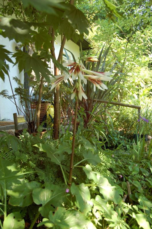 von dieser Cardiocrinum giganteum blühen heuer 3 stück verteilt im garten...war gestern abend ein olfaktorisches erlebnis bei der windstille + wärme. heute leider zuviel wind.