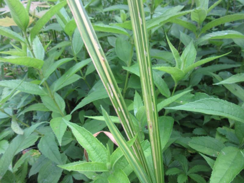 So einen Findling gibts hier ebenfalls, hatte den völlig vergessen. Hält sich wohl halbwegs, zumindest ist er in den drei oder vier Jahren seiner Existenz nicht verschieden.Ist auch aus einem großen Bestand rausgefischt, die Pflanzen kamen ziemlich sicher ursprünglich aus IV-Vermehrung. Die Ausgangssorte war/ist, meine ich, `Canadian Border Patrol´. Eine herkömmlich (frisch) geteilte `Shining Plumage´ hatte eine noch schönere Zeichnung, verschwand aber leider wieder.