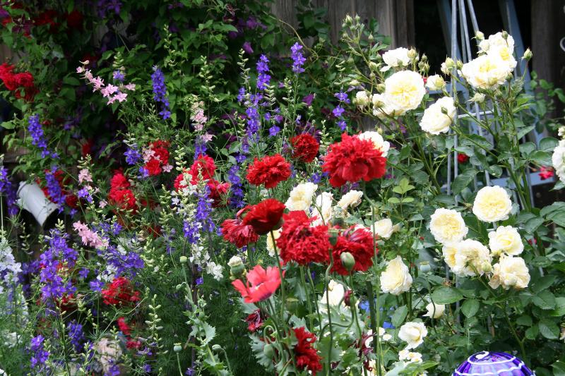 Die Balkanmalve wird sehr hoch und breit. bei mir blüht sie noch nicht.aber die Taglilien beginnen. Die blüht in einem viel dunklerem rot.