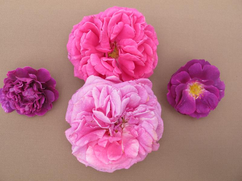 Liebe Leute, ich brauche mal Rat :-\Diese Rose (mitte) hab ich im Frühjahr als 'Souvenir du Dr. Jamain' gepflanzt und die ersten Blüten entsprechen nun so gar nicht dem, was ich wollte...