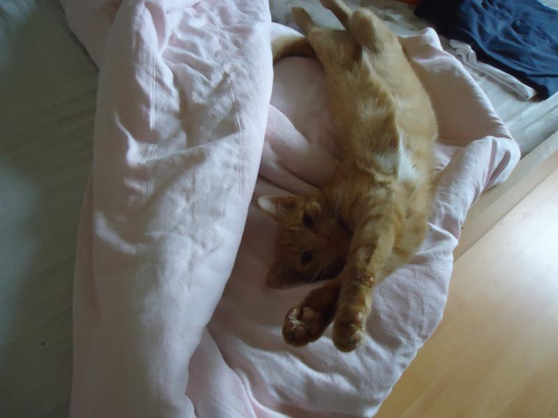 ;DSnoopy war heute früh etwas entrüstet, seine Frühstücksration fiel mehr als knapp aus, weil mein Göttergatte die neu eingekauften Dosen Katzenfutter nicht gefunden hatte und ich noch fest schlief :DDa bekam der kleine Mann eben ein zweites Frühstück.Jetzt mault er laut herum, ich soll endlich in den Garten gehen, er will mit raus.
