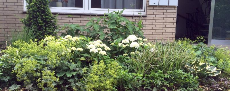 'Minuteman' macht die ganze Saison über eine gute Figur, dass ist gerade im Vorgarten nicht zu verachten...Du hast hinten im Beet doch eine weiße Herbstanemone.Ich habe im Vorgarten auch eine stehen, kombiniert mit Aster 'Silver Spray' (A. cordifolius oder diffusus).Die Kombi finde ich sehr hübsch, auch wenn man die Aster etwas stützen muss.Ich suche gleich mal nach einem Foto.Und wenn du ein bisschen Farbe und Winteraspekt hineinbringen willst:Ich könnte mir in dem Beet auch gut Helleborus vorstellen.
