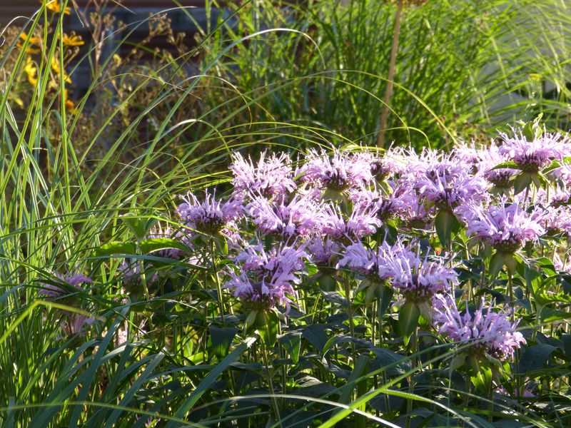 Die klassischen Monarda-Sorten, auch die Sorten von Piet Oudolf bekommen hier unweigerlich Mehltau, wenn sie nicht nach 3 Jahren verpflanzt oder ordentlich gedüngt werden. Und sie stehen hier in gutem Lehmboden.Unsere Hybriden, wo M. fistulosa ssp. menthaefolia beteiligt ist ('Tante Polly', 'Huckleberry', 'Camilla' und 'Rebecca'), sind sehr stabil und äußerst ausdauernd, leider sind die Farben nicht unbedingt jedermanns Geschmack. Sie standen 9 Jahre und wurden stets kräftiger und schöner, hatten keinerlei Mehltau.