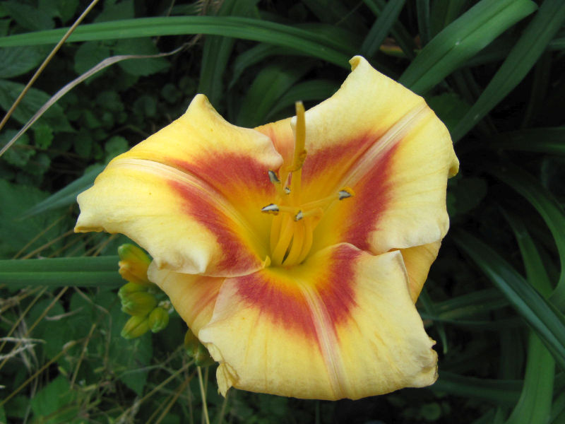 Die hier finde ich ganz nett. Sie blüht sehr lange, das gefällt mir. Ich habe sie mal von Susanne bekommen.den weggeschenkten rostorangen fand ich aber auch schön – deutlich schöner als hemerocallis fulva!![]()