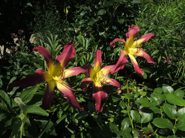 Hier reiche ich noch ein Foto nach von einer Blüte, die morgen blühen wird und heute schon an den Sepalen den für Taglilien ungewöhnlichen 'Zwirbelbart' entwickelt.Der Berleyer Zwirbelbart fängt an zu blühen. Er hat seinen Namen von den Sepalen, die sich bereits einen Tag, bevor die Blüte öffnet, zurückrollen und dann auch zurückgerollt beiben.