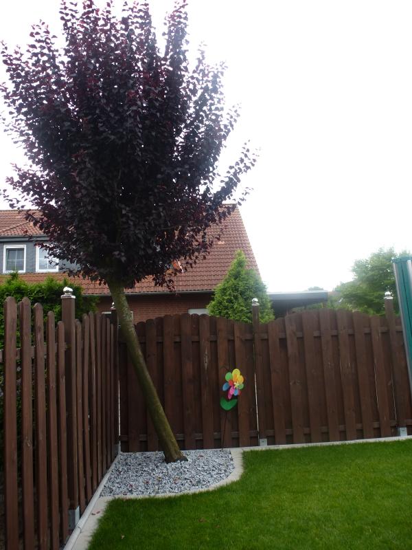 Hallo zusammen.Ich habe in meinem Garten eine Blutpflaume stehen, die mir aktuell ein wenig Gedanken bereitet und hoffe auf fachkundige Auskunft, wie ich die Situation einschätzen kann und was ich ggf. machen kann.Das Bäumchen ist 15 Jahre alt und war bis vor 2 Jahren umringt von sehr dichtem Kirschlorbeer.Ich denke dadurch kam auch der Schiefwuchs zustande.Nachdem wir das Grundstück gekauft haben, haben wir dort den Lorbeer ausgebuddelt, damit dem Baum befreit und alles ein bisschen zurecht gemacht.Bei starken Winden hat die Blutpflaume auffällige Bewegungen gemacht und arbeitete sehr im Bereich der Wurzeln (war also nicht sehr fest im Boden).Deswegen haben wir Sie letztes Jahr auch eingekürzt, um die Windangriffsfläche zu reduzieren und dem Baum auch wieder etwas Form zu geben.Wie man auf den Bildern sieht, trieb er auch wieder gut aus.Seit ca. 8 Wochen ist mir jedoch aufgefallen, das sich neben einem alten Riss nun frische Risse in der Rinde bilden.Ich weis nicht, wie ich damit umgehen soll und was ich machen soll oder sogar muss.Es wäre schön, wenn ich ein paar gute fachkundige Ratschläge bekommen könnte.EDIT: Ein Bild des Risses habe ich auch noch, kann aber nur ein Bild hochladen aktuell.