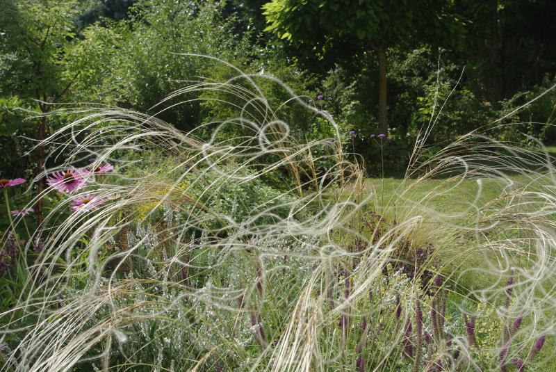 Es müsste eine Zùchtung geben, bei der die Samenstände lange anhaften.Bald verweht ist auch Stipa barbata.