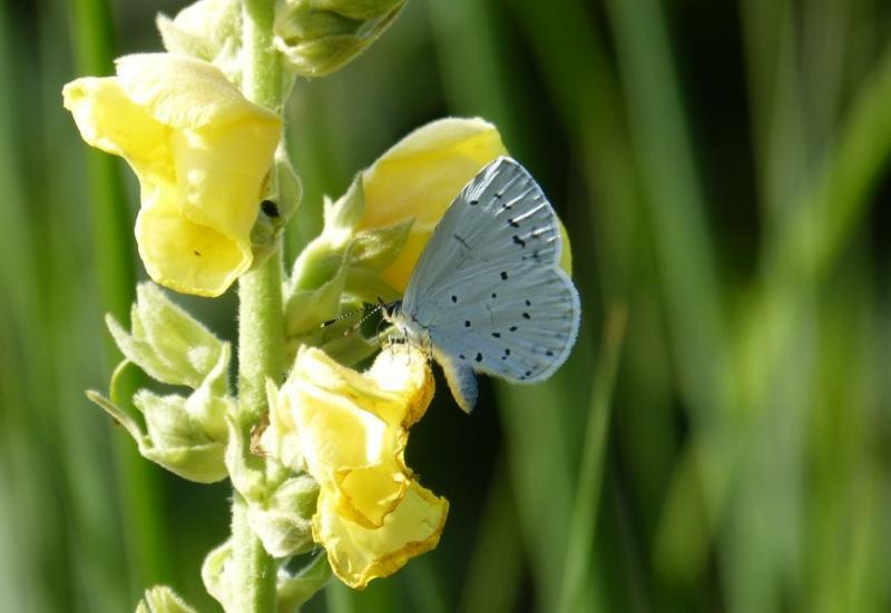 Und ein Bläuling, eventuell der Faulbaum-Bläuling.