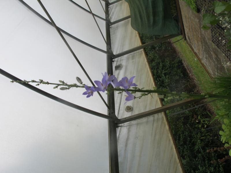 Eigenwillig und durchaus an Verbascum erinnernd ist der Blütenstängel. Hat jemand eine Ahnung, ob das eine Campanula ist und wenn ja welche und inwieweit die winterhart ist?