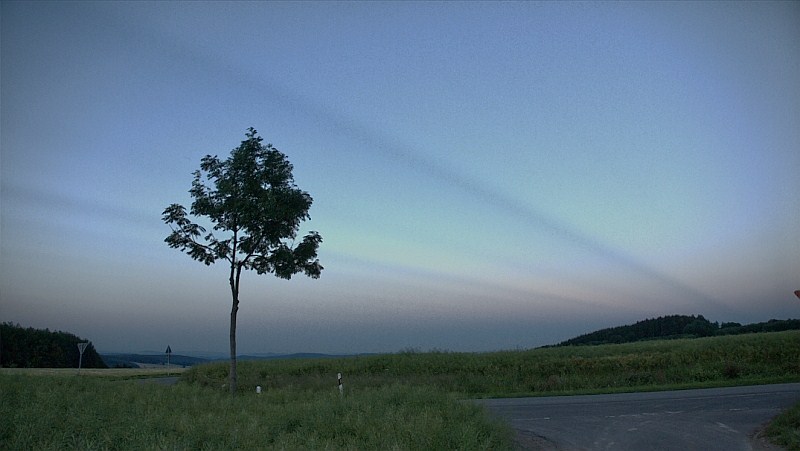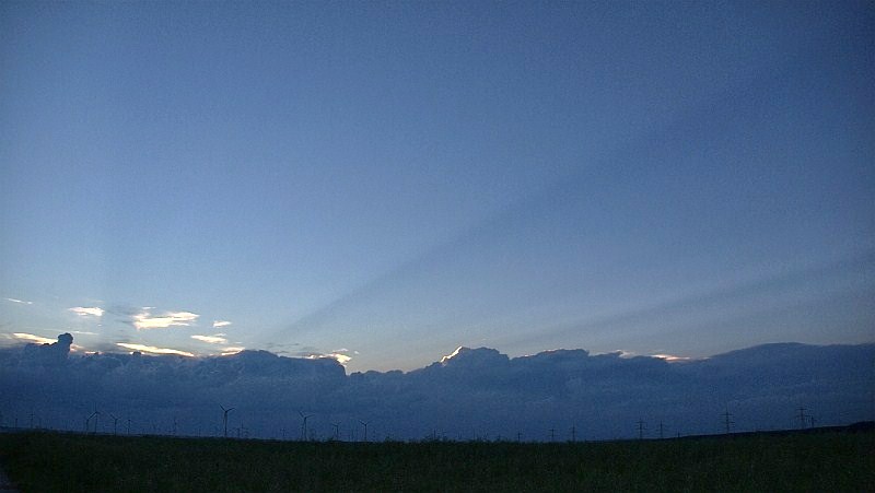 dieselben strahlen am gegenhorizont. die heranziehenden gewitterwolken waren so mächtig, dass laut satelitenfoto die schatten wohl weit über 100km reichten.