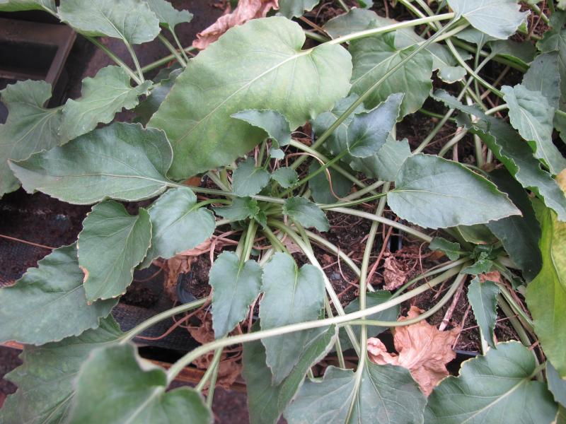 Vor anderthalb Jahren wurde mir ein vertrockneter Blütenstängel einer blau blühenden Königskerze von Krk in die Hand gedrückt. Ein blaues Verbascum erschien mir interessant, weshalb ich die Samen aussäte. Letztes Jahr bildeten die Pflanzen solch eine Rosette mit graugrünem Laub.