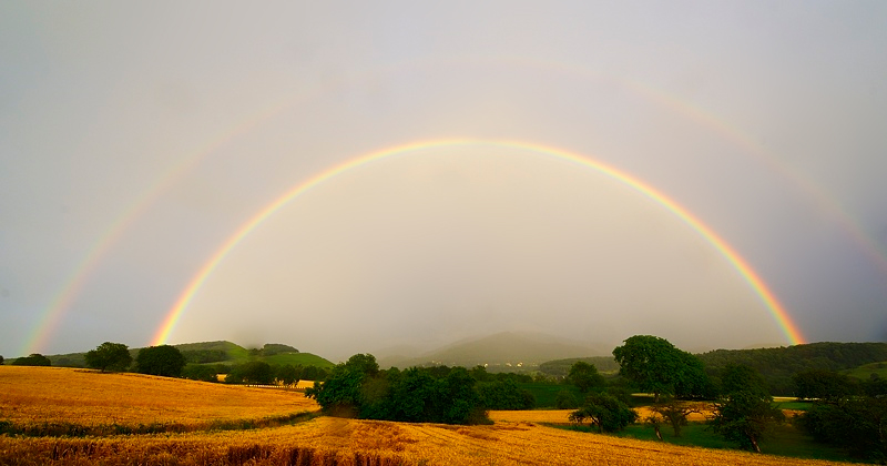 wunderbar der vollständige Doppelbogen in phantastischem Licht und sogar schöner Umgebung.Ich habe vor einiger Zeit einen Bogen mit weniger schöner Umgebung aus zwei Bildern zum Panorama zusammengesetzt, weil ich kein passendes Objektiv drauf hatte.