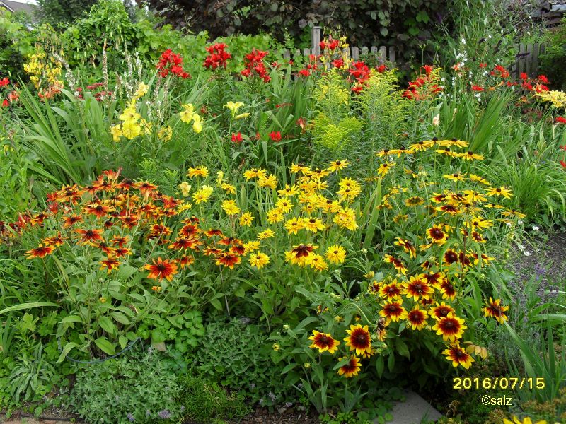 Zum Glück haben mir die Lilienfliegen doch noch ein paar Blüten gelassen, so bin ich ganz zufrieden mit meinem rotgelben Beet