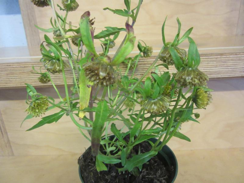 Die realtiv großen Blütenköpfe (vielleicht vom Dünger aufgepumpt) vor Allem aber, dass selbst die Frischen seitwärts stehen bis hängen, irritiert mich, ist es trotzdem Bidens tripartita? Oder eine andere Art?