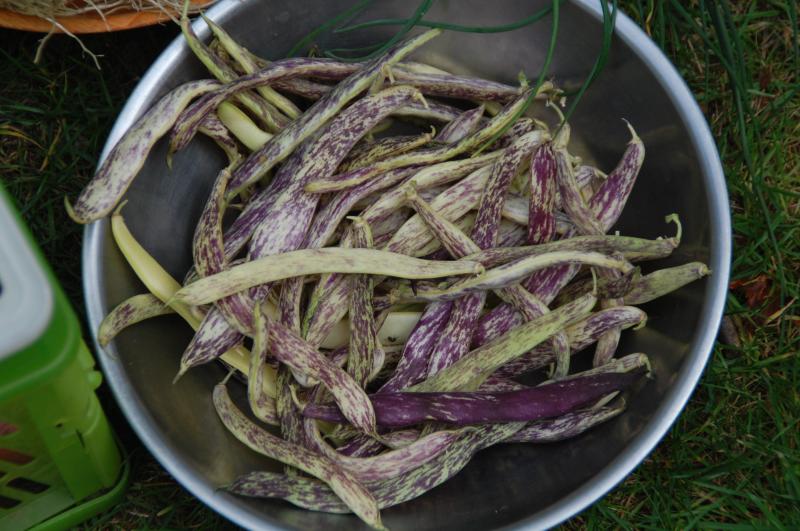 OT: Für HäwimädelHeute habe ich neue Drachenzungenbohnen geerntet. So sehen sie roh aus. Gekocht ist von dem schönen Muster leider nix mehr zu sehen. Die Samen habe ich aus einem Samentauschpaket bekommen. Wenn Du magst, lege ich ein paar Körnchen für Dich bei der Samenernte beiseite.