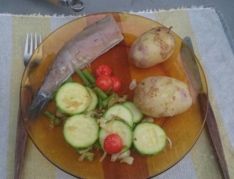 Ich hatte gerade frische Matjes mit dem, was der Garten so her gab.