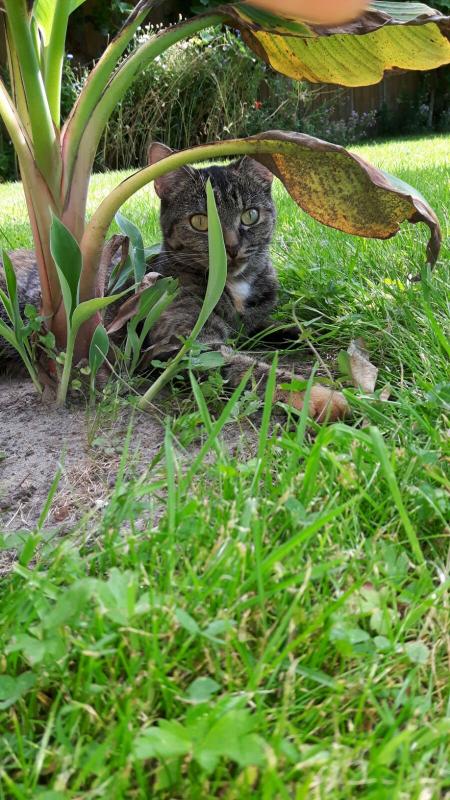 so, ich hab dann auch mal ein Foto von Majasie bewacht die Bananenpflanze