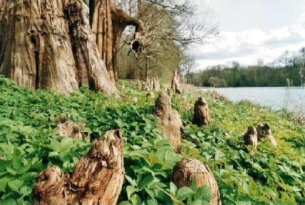 .GrüßeIrisP.S.Der Gehölzeexperte erkennt sofort die spitz-erotischen Knie eines Taxodium ascendens im Vordergrund, der mit einem Taxodium distichum im Hintergrund anbändelt. Man sieht deutlich die Knielandschaft; der Rest des Wurzelwerks ist abgetaucht.