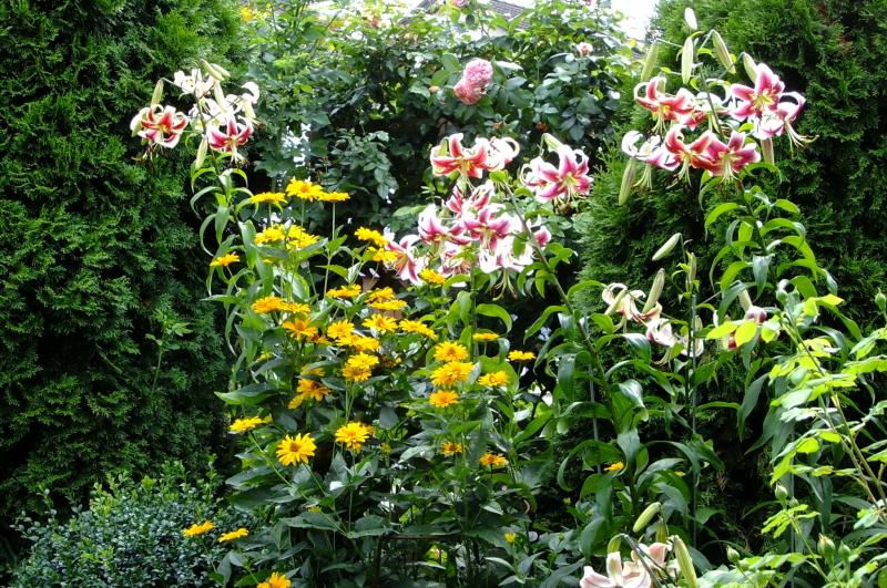 In diesem Jahr mußte ich wieder mal dazulernen.Im Frühjahr kamen neue OT-Hybriden zwischen meine Kalimeris, weil ich dachte, daß sich die weißen Sorten "Forever" und "Ice Cube" gut dazwischen machen würden.Als ich vor Kurzem die Lilien suchte, blühten sie zwischen den Kalimerisstengeln auf halber Höhe und waren praktisch unsichtbar.In Zukunft pflanze ich die Zwiebeln im ersten Jahr in Töpfe und erst im Herbst ins Beet.