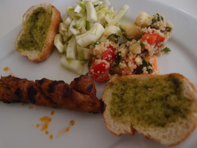 und gestern kinderessen. nudeln mit tomatensoße und wurstscheiben. großer salat dazu.