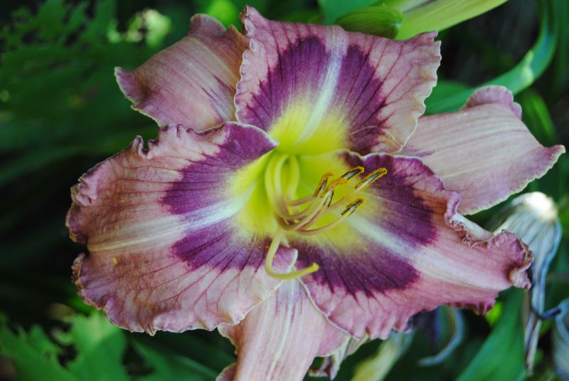 Hier ist der Peak Bloom nun schon gute 3 Wochen her und von den herkömmlichen Sorten blüht so gut wie nichts mehr - die lange gesuchten und seltenen späten/sehr späten Sorten laufen dafür gerade zur Hochform auf oder warten noch auf die Blütenöffnung (einige beginnen hier erst Mitte August mit der Blüte). Die ersten Sämlinge aus Crossen mit späten/sehr späten Sorten blühen nun die 2. oder 3. Saison.Triangel Sister (Borderline Crazy x Vertical Horizon) blüht hier mit den zugekauften späten Sorten gleichzeitig und zeigt konstant ein sehr ausgeprägtes Auge. Höhe 85 cm, Durchmesser 14 cm.