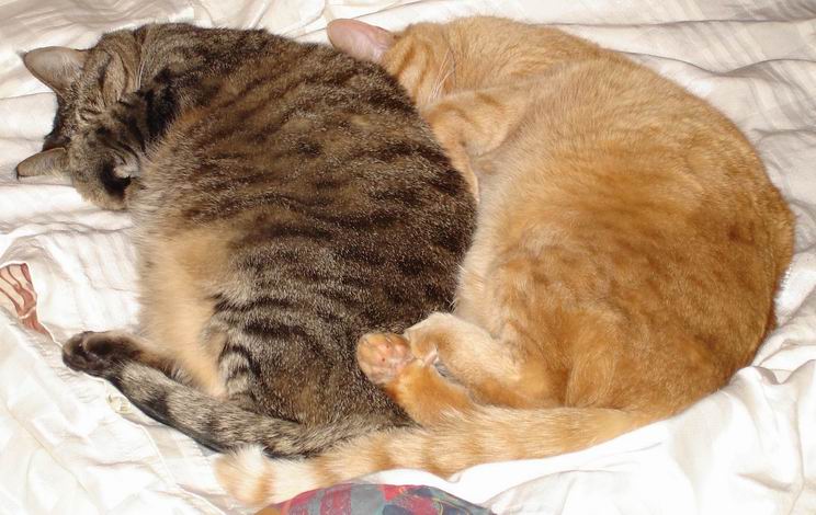 Das Bild ist druckreif!!!Caruso und Columbine halten gerade Mittagsschläfchen - die wissen, dass es trotz Sonne draußen kalt ist...Meine Tante aus der Schweiz sagt "Büsis" zu den Katzen - wie sie bloß auf sowas kommt?