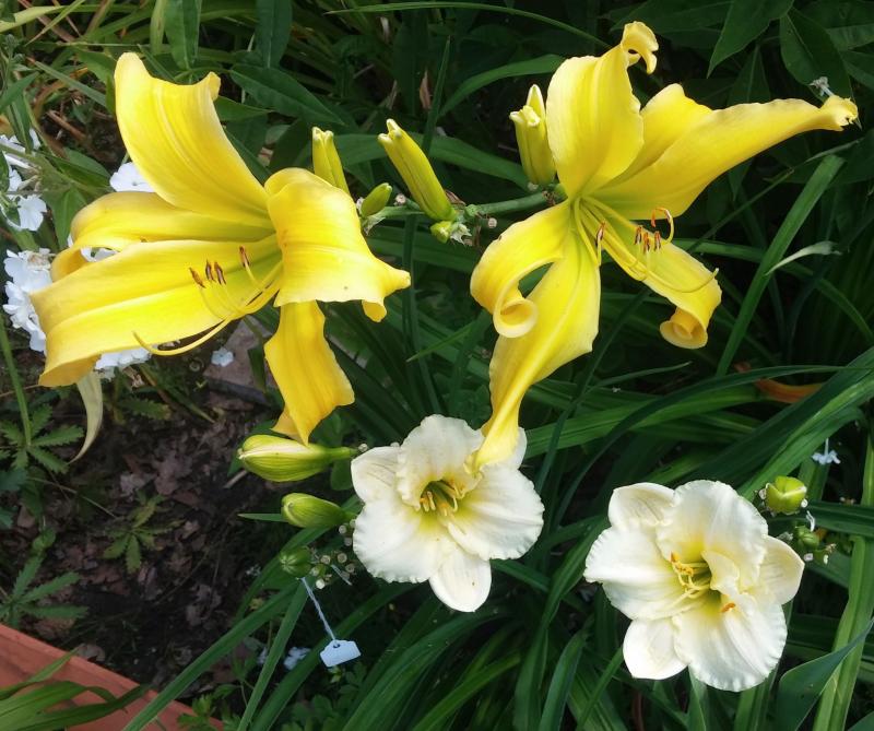 Ein paar Blüten von heute.Berleyer Zwirbelbart hinter (im Bild über) dem Berleyer Weißen Herzchen.