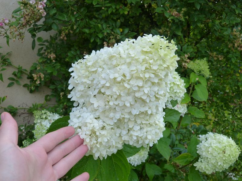 Da hätte ich Bedenken, ob der Neuaustrieb bis zum Winter ausreift. :-\Die Hortensien profitieren dieses Jahr merklich von den einigermaßen regelmäßigen Niederschlägen. 'Limelight hatte lange nicht mehr so große Blütenstände.
