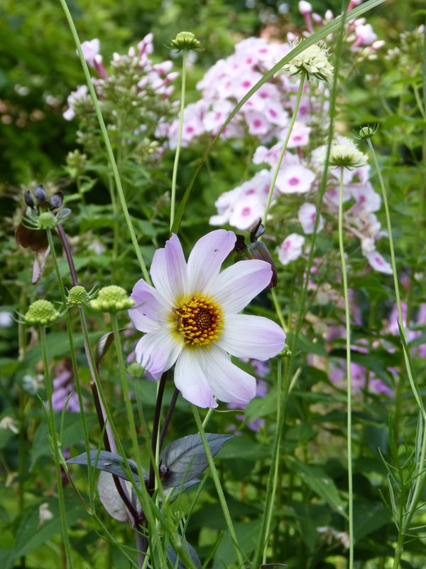 Diese drei Kombis gefielen mir heute ganz besonders gut:weiße Malve und LychnisBildAnemone 'Wild Swan' und Scutellaria incanaBildHemerocallis 'George Cunningham' und Kalimeris 'Jürgen Wever'Bild