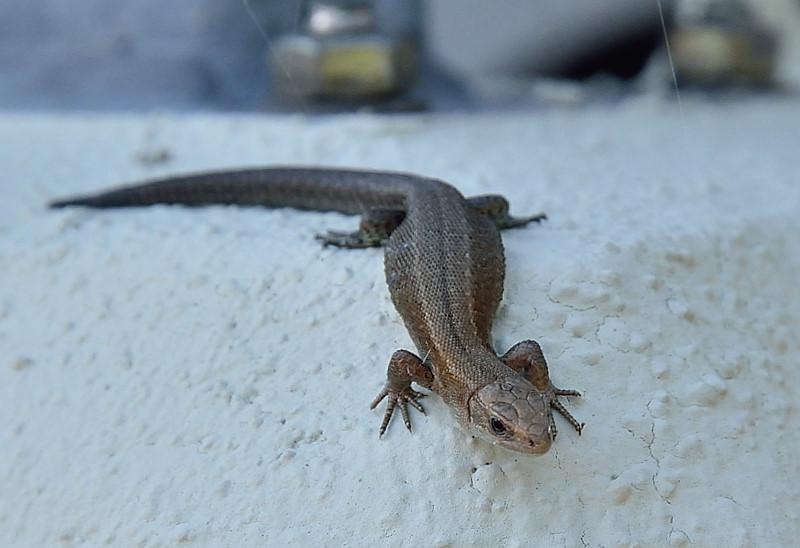 Seit Jahren war es die erste Eidechse, die ich hier (wieder) sah. Ca. 10 cm war sie lang und alles andere als scheu. Ich denke, es ist ein Jungtier vom vergangenen Jahr.