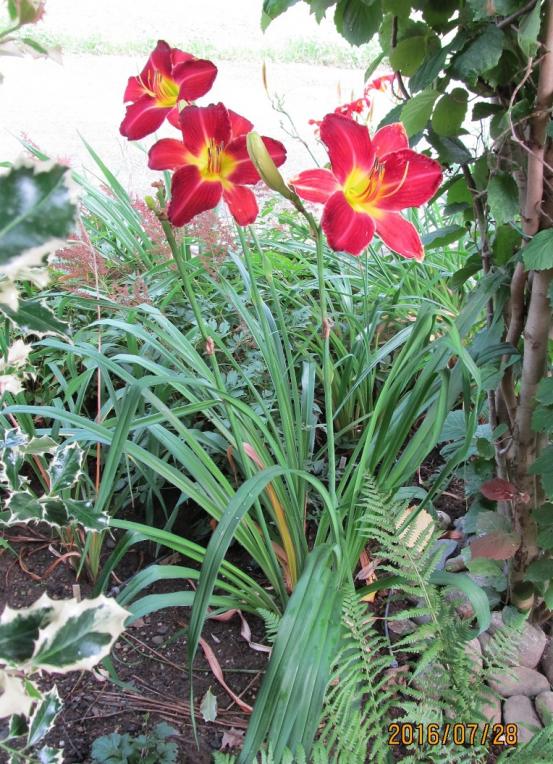 Viel wirkungsvoller finde ich mein bisher bestes Ergebnis - Late Red Baby (Sandra Elizabeth x Bill Fall). Auf 95 cm hohen Stängeln mit 18 cm Blütendurchmesser liefert diese Pflanze zeitgleich mit der Blüte der sehr späten Sandra Elizabeth wesentlich größer Blüten und hat noch einiges an Knospen auf Vorrat. Auch wenn die Blüte farblich nicht so satt ist wie manche rote zur Hauptsaison, reißt sie nun doch ein ganzes Beet optisch heraus: