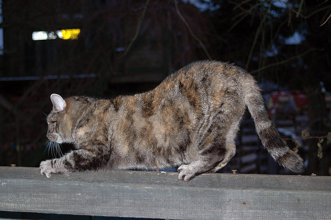 Das mit dem Klettern trifft zu, ich hoffe nur, sie verlegt ihre Übungen in einen anderen Garten.Das sieht nach einem Abessinier aus. Sehr eindrucksvoll!