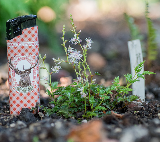 Ich gebe zu, dass die Pflanze im Topf steht und dass ich sie für das Foto mit ein paar Lesesteinen vom Acker "dekomäßig" aufgepeppt habe. :-XAber... fühlt man sich nicht in einen japanischen Bergwald versetzt?