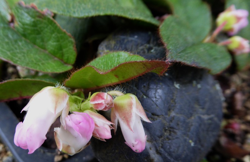 Epigaea asiatica zeigt die ersten Blüten. Versteckt wäre wohl die bessere Beschreibung. Musste sie unter den Blättern hervor holen. ;) ;D