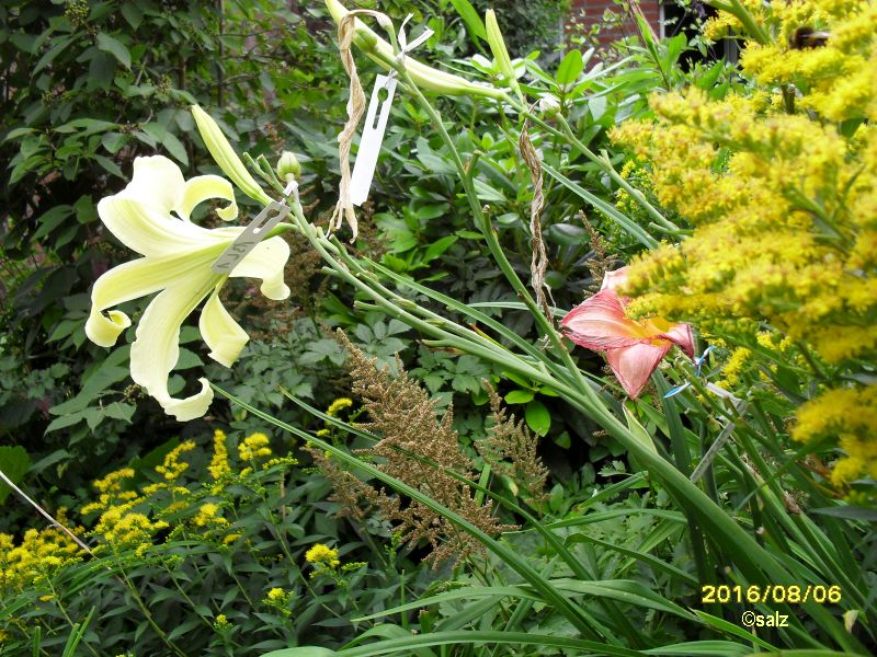 Sehr schöne Taglilien, Fini! Solar Blue Angel, schöne große Blüten auf einer niedrigen und mickrigen Pflanze. Kein Vergleich zu der wunderbaren Tochter (s. # 1378)