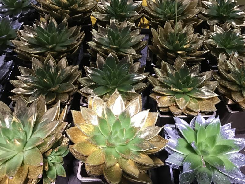 Neues Gruseln im Baumarkt... Diese Echeverien mochte auch für reduzierte 3 Euro keiner kaufen, aber immerhin scheinen die Pflanzen die Glitzerattacke zu überleben.