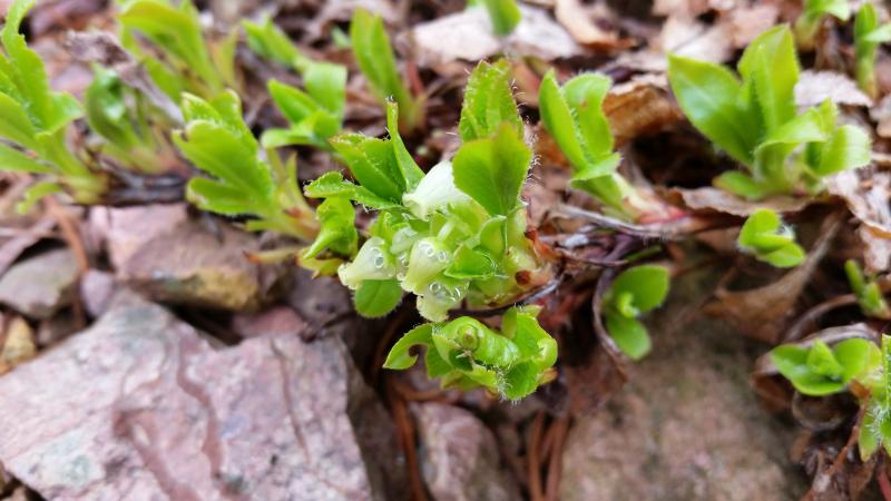 Epigaea asiatica zeigt die ersten Blüten. Versteckt wäre wohl die bessere Beschreibung. Musste sie unter den Blättern hervor holen. ;) ;D