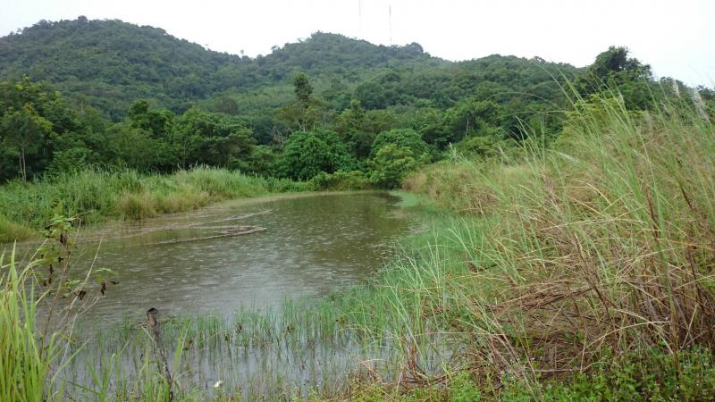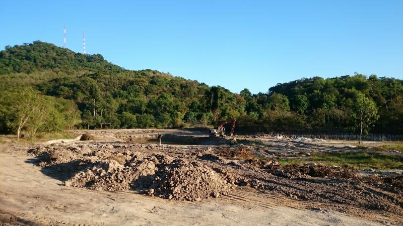 Hallo liebe Gartenfreunde,nach 12 Jahren haben sich meine Frau und ich entschieden, unseren Lebensabend in Tapong/Muang Rayong Thailand zu planen und dort einen Altersruhesitz aufzubauen.Im Vorwegzunehmen: Meine Frau habe ich auf einem Reisfeld kennen gelernt und nicht in den fuer Thailand beruechtigten Etablissments. War eine (lange) schoene Geschichte:2003 Motorradtour, Kuehler im nirgendwo des Isaan Gebietes geplatzt, 3 Tage Wartezeit in einem Resort und an meiner Terrasse ein Reisfeld wo eine kleine Frau Riesenbuendel Reisstroh schleppte. Den kommenden Tag kehrte sie auf einem Bueffel zurueck und als Motorradfahrer hatte ich schon jedes Geraet gefahren aber noch keinen Bueffel. Zwei Schritte ins Feld und ich steckte bis zum Brustkasten im Schlamm, eine kleine Frau fiel kreischend von Bueffel und das Lachen war so durch und durch herzlich, da hat es gefunkt... ...und sie ist erschrocken mit den Worten Farang Sjock yai! (Auslaender schock gross) weggerannt. Nachmittags hatte sie sich dann mit der Schwester (die ein paar Brocken Englisch kannte) entschuldigt. Es folgte eine Einladung zum Candlelight Dinner und am abend dann stand die gesamte Familie (11 Personen) mit einem Einachser und Anhaenger vor der Tuer und wir endeten in einem Nachmarkt.. ....7 Jahre spaeter hatten wir dann endlich die Erlaubnis von Oma und das Wohlwollen vom Dorfmoench um zu heiraten. Nun hat die Tante (sie nennt mich Pi Chai=alter Sohn und meine Frau Nong Saow=kleine Tochter und liebt uns wie ihre eigenen Kinder) uns 6 Rai Land geschenkt. (1 Rai =1600qm) damit wir in die Naehe der Familie ziehen. Wunderschoen gelegen, eingeschlossen in einem Berg, eine liebe staendig besorgte Familie in der Naehe, da fiel es leicht zu sagen, DAS ist es. In Google maps koennt Ihr die Koordinaten 12.6541411,101. 4099176,206 eingeben. Damit beginnt dieses Thema und auch mein Projekt (wir sind in der letzten Trockensaison begonnen Erde zu bewegen).Ich sah den Teich, zu der Zeit ein Baggerloch 60x20x8m und er war voller Leben. Ein Probeangeln ergab dann 1 Giant Snakehead, 3 Striped Snakehead, 5 Tilapias und mit der Koederfischsenke noch Massen an Guamis (Fadenfische die meine Frau isst) und zu meinem groessten Erstaunen 5 Aale. Spaeter fanden wir heraus dass Aale in der Regensaison regelmaessige Zuwanderer sind.Jemand hatte Eukalyptus gepflanzt und einige Wildbaueme vom Urwald der Berge haben sich dort vermehrt. Als das erste Bild poste ich wie es im Urzustand aussah.(geht ja nur 1 Bild pro Antwort oder kann man noch Bilder im text einbauen, die option ist ja vorhanden??)GruesseWill1min. Beitragsanzahl noch nicht erreicht